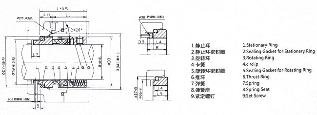 為小彈簧結(jié)構(gòu),非平衡型密封,軸向尺寸短,密封端面受壓均勻。